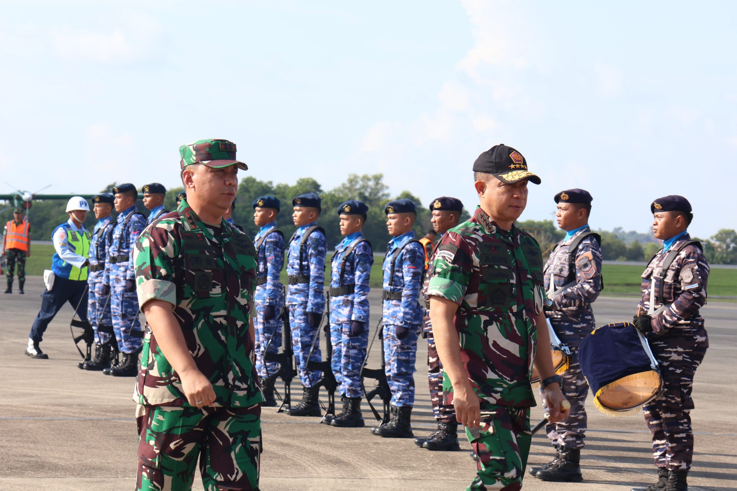 Panglima TNI datang bersama rombongan ke Batam untuk melihat latihan Latgabma TNI-SAF CT FTX Griffin Cakti Tahun 2025 yang berlangsung di perairan Batam.