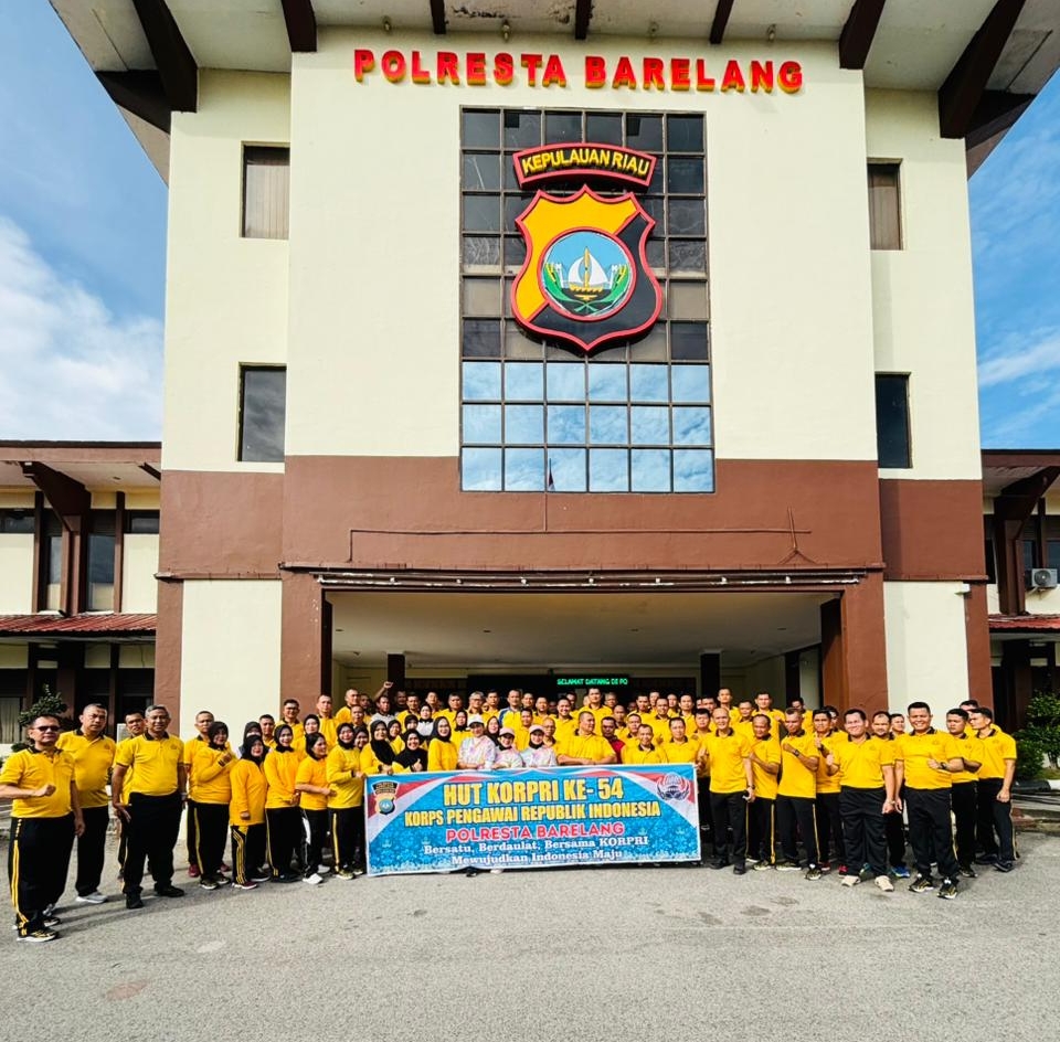 Batam (Rempangpost.com) – Dalam rangka memeriahkan Hari Ulang Tahun Korps Pegawai Republik Indonesia (Korpri) ke-54, jajaran Polresta Barelang menyelenggarakan kegiatan olahraga senam bersama yang dilaksanakan di Lapangan Apel Mapolresta Barelang, Sabtu (15/11/2025). Kegiatan ini menjadi momentum untuk meningkatkan kesehatan, kebersamaan, serta semangat pengabdian anggota Polri sebagai bagian dari pelayan masyarakat.